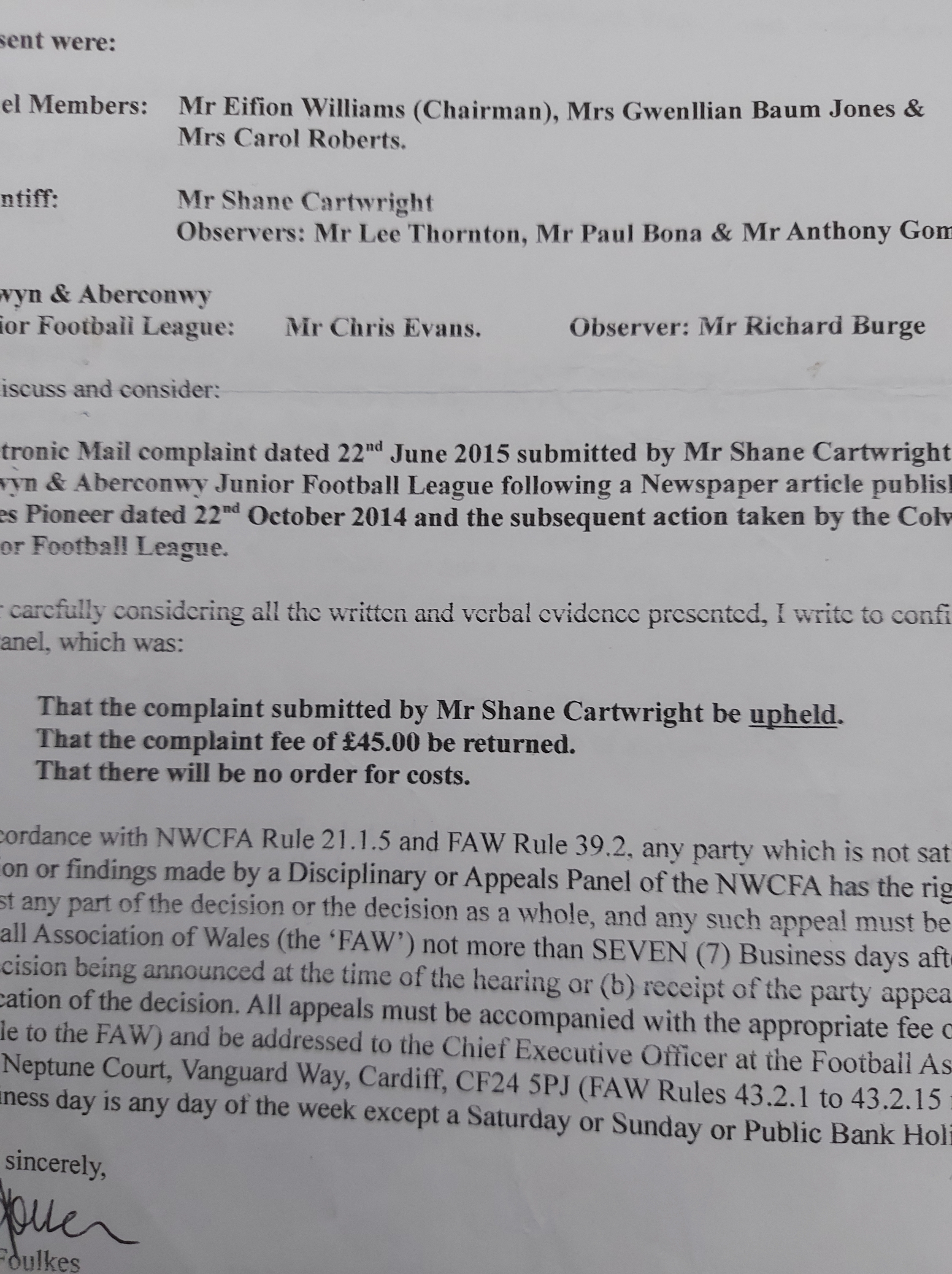 Chris Evans who was the Chairman of the Local Junior Football league ( He’s a driving instructor) and the committee including a Police officer Gary Cooper, all bullied and humiliated me at a meeting in front of 50 people or more.