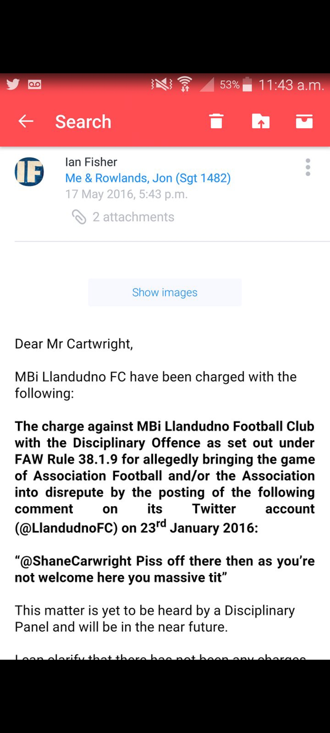 It started to slow up when Sam Williams sent me a Racist Tweet, The awful Faw stated it was offensive and fined the club, yet no apology. Sam Williams had been making/creating Fake profiles on Twitter slating me until his error hit him full in the face. Amazing when he did it, it all stopped.
