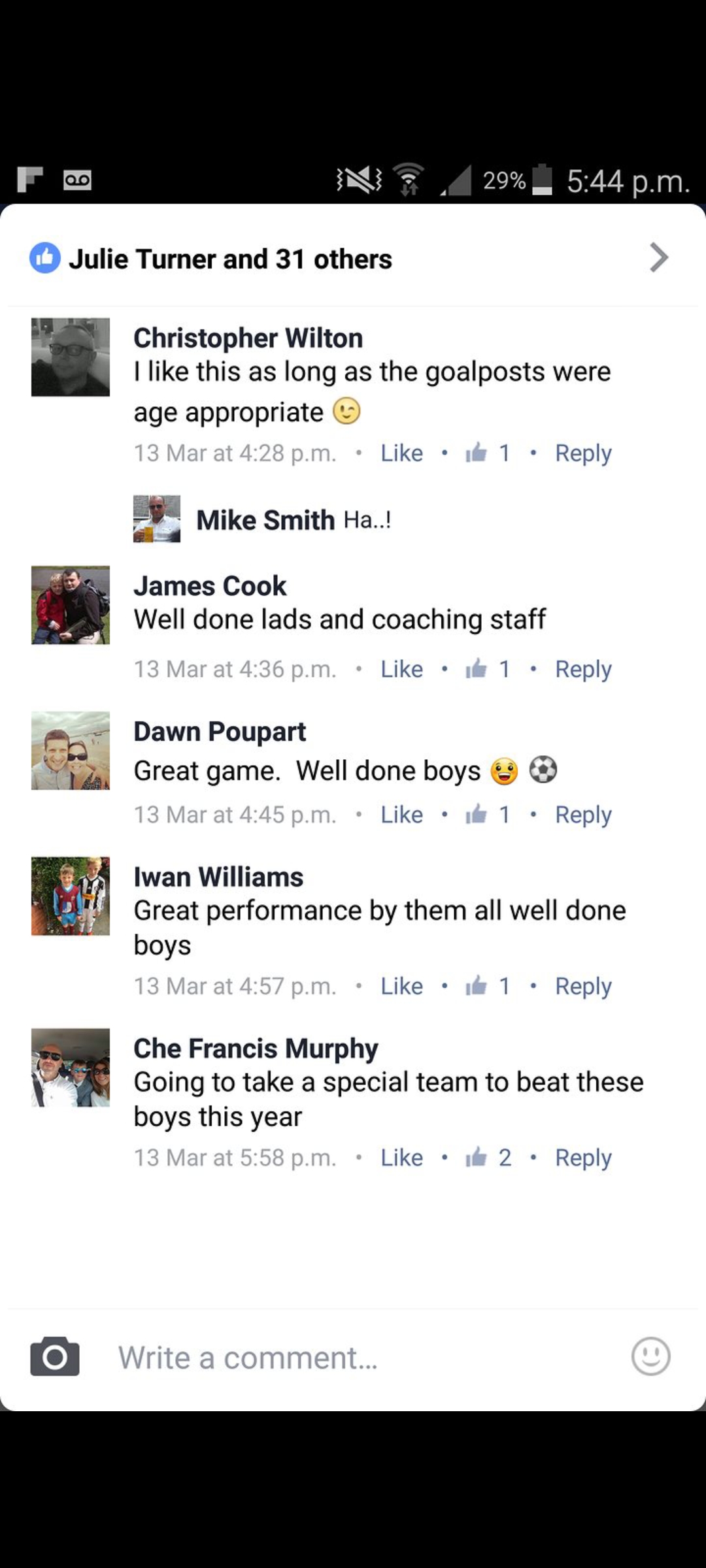 Chris Wilton is seen here commenting on a post, his comment regards goal sizes.