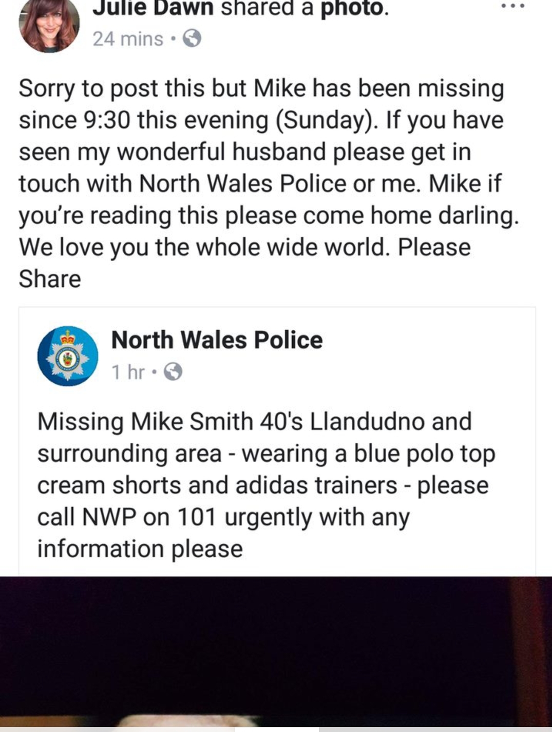 I couldn’t sleep, so i went on my phone and saw a Facebook post by North Wales Police