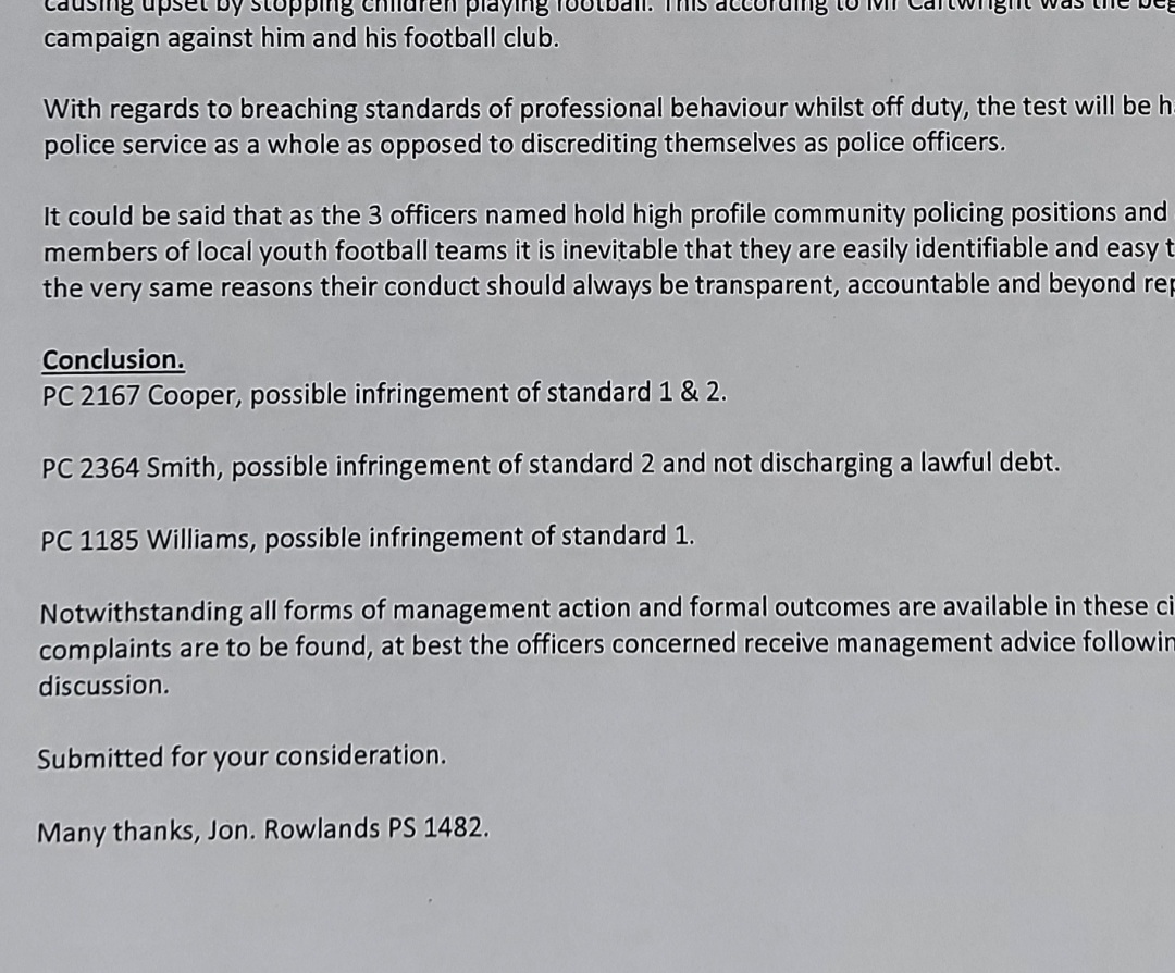 Srgt Rowlands also deliberately hid other important parts of my complaint for 3 years, basically hiding my complaint in a desk, although he did tell other colleagues what was going on, and guess what, they hid it too.