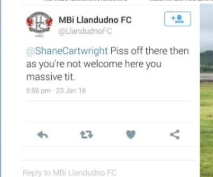 As you are aware, I was subjected to Racism, Homophobia on their ( Llandudno Fc ) Social media, Bullied by Mike Smith their Director, Discrimination by Shaun Eardley ( Now 1st team manager ) not allowing me to hire their Facilities, stalked on line, Bullied by various Staff and supporters, the list is endless. Many years of torment and upsetting moments I had to endure.