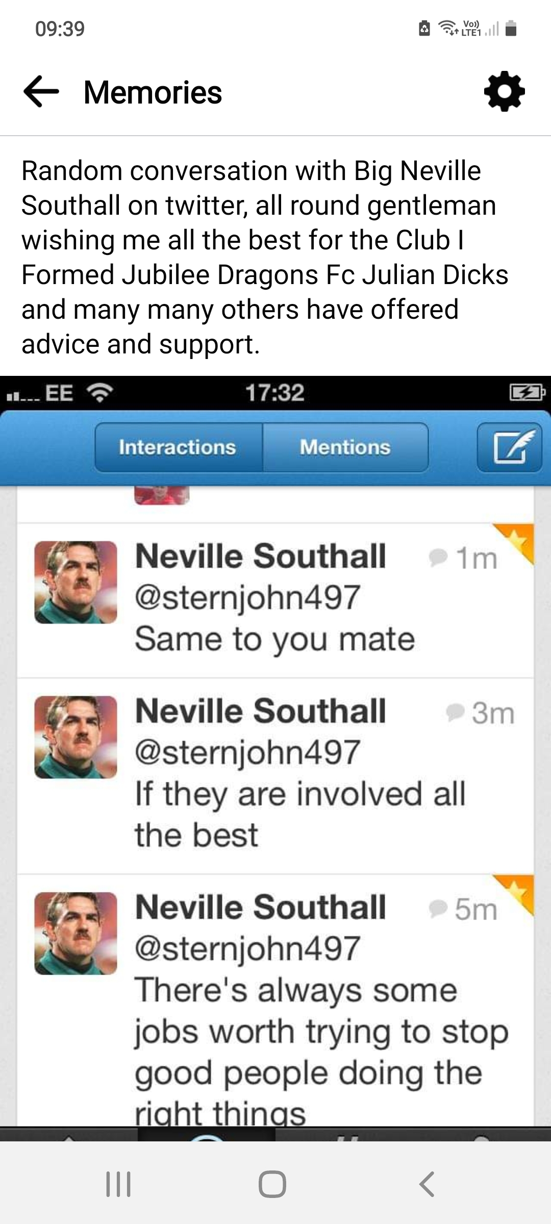 Here is Nev Southall supporting my Club, he amongst many famous and respected Football players past and present showed support and like me, thought that those in power would actually do their powerful job.