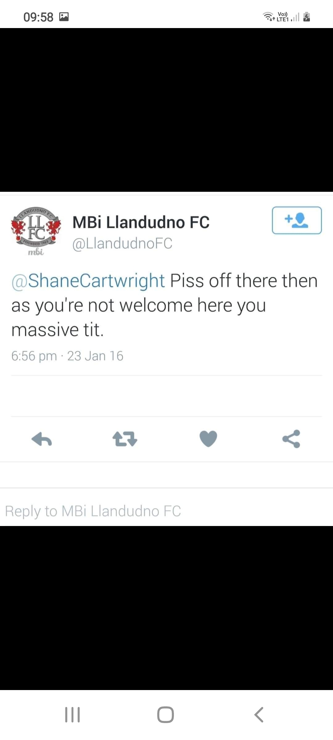 A quick update in regards my complaint in regards Burnley Fc and Llandudno Fc partnership