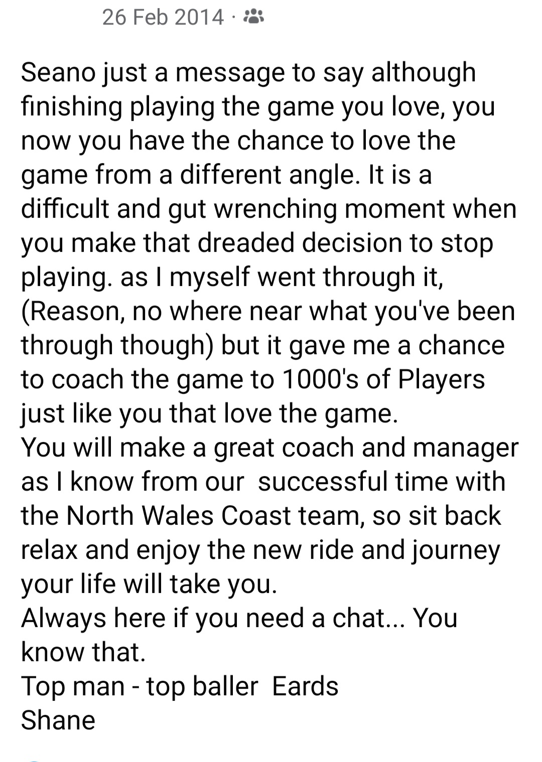 Sean, I’m sure you will be made aware of this blog and I invite you to have your say to what happened. Clear the air so hopefully people can move forwards. I’m happy for your side of the story to be told and some have left the club now so that may be easier. Even Llandudno Fc should apologise as this certainly is dragging the club through the mud, only because they never condoned what was going on, they knew about it, and it still continued.