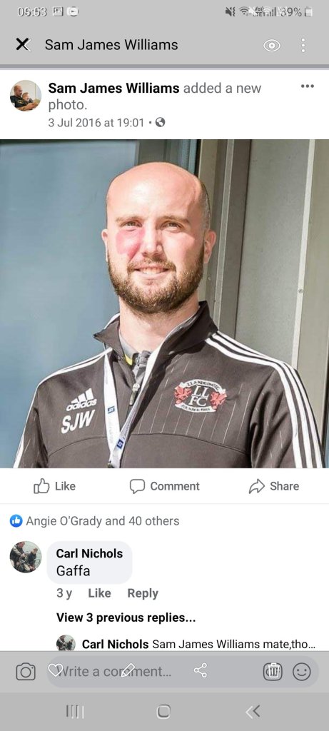 Here is Sam James Williams, another stalker who wrote racist comments about me and under various fake profiles trolled me over many years