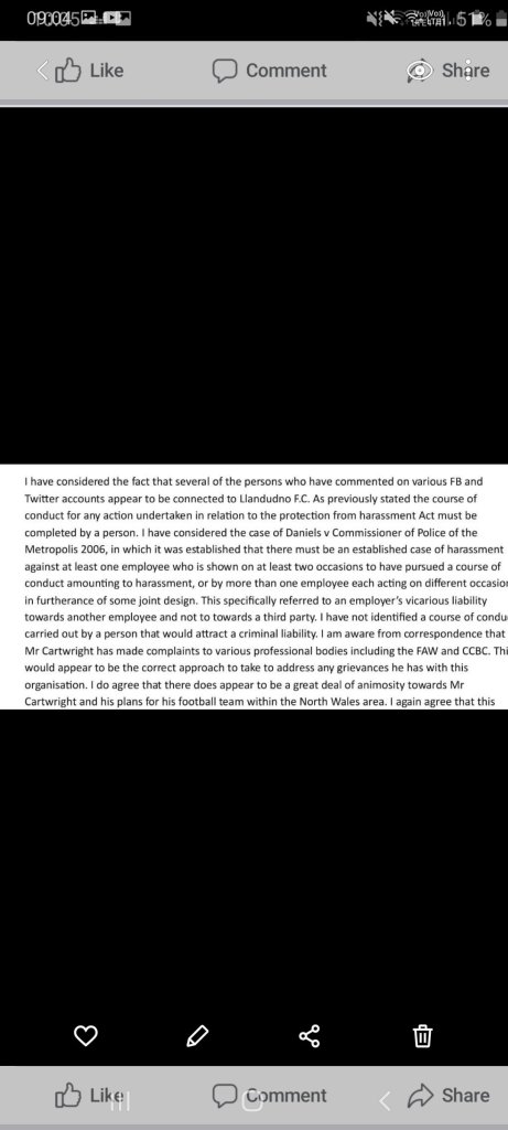 I will leave this post up for the reaction it will get from members of Llandudno Fc and now the Football watching Public, then I will give a full detailed account and the reasons behind the picture and other people at the club who even the FAW and Departments of the FAW, know about-but have kept very quiet.